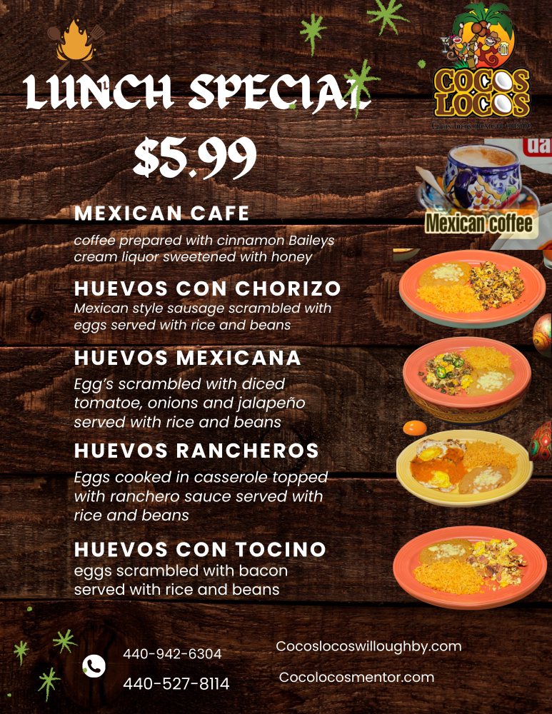 ESPECIALES Cocos Locos Mentor Ave Lunch